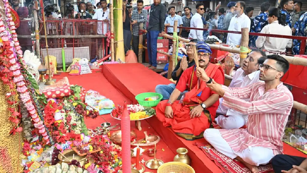 এর আগের দিন, অর্থাৎ কালীপুজোর দিনে বিকেলে অভিষেক গিয়েছিলেন লেক কালীবাড়িতে। সেখানে রাজ্যবাসীর সুস্থতা ও সৌভাগ্য কামনা করে পুজো দেন তিনি। পরে যান মুখ্যমন্ত্রী মমতা বন্দ্যোপাধ্যায়ের কালীঘাটের বাড়িতে, যেখানে মুখ্যমন্ত্রীর বাড়িতেও শ্যামার আরাধনায় অংশ নেন অভিষেক।