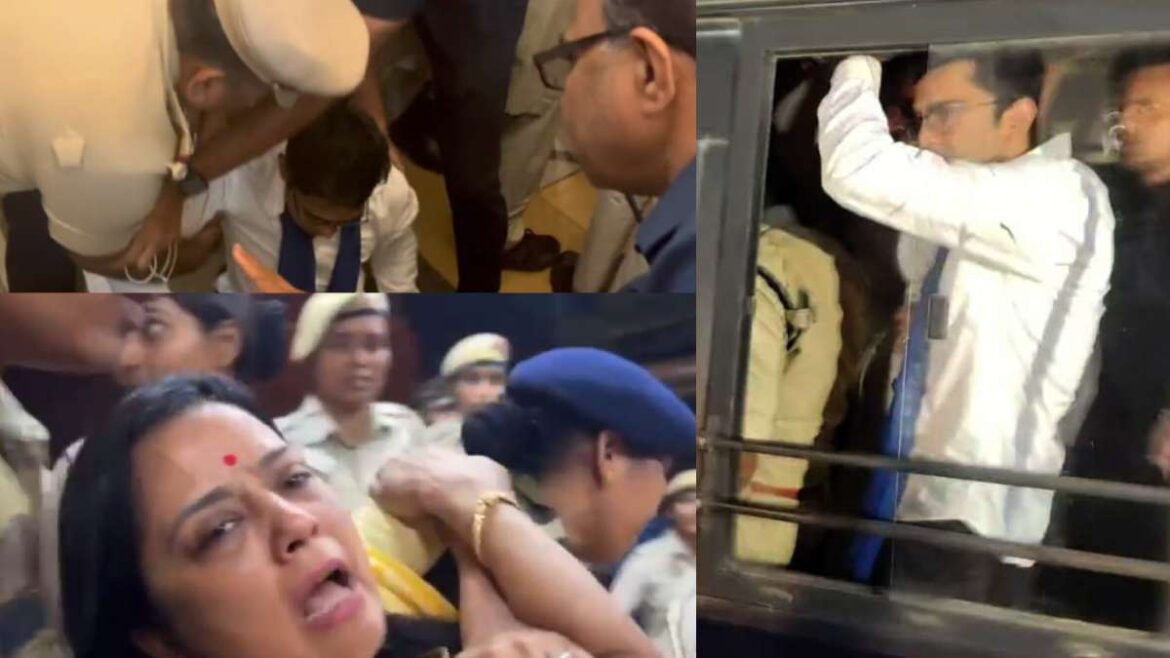 তৃণমূল সূত্রে খবর, কৃষি ভবন থেকে নেতা-নেত্রীদের আটক করে নিয়ে যাওয়া হয় মুখার্জি নগর থানায়। খবর পেয়ে সেখানে যাচ্ছেন অন্য নেতা, মন্ত্রীরা। প্রিজন ভ্যানে তুলে নিয়ে যাওয়া অভিষেককেও। অভিযোগ, তৃণমূলের বেশ কয়েক জন নেতা-মন্ত্রীর মোবাইল ফোন কেড়ে নিয়েছে দিল্লি পুলিশ। চ্যাংদোলা করে তুলে নিয়ে যাওয়া হয় সাংসদ মহুয়া মৈত্রকে।