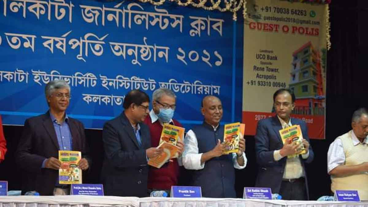 ক্লাবের মুখপত্র ” সাংবাদিক “এর উৎসব সংখ্যার মোড়ক উম্মোচন করেন মন্ত্রী রথীন ঘোষ এবং গ্ৰন্থাগার ও প্রকাশনা কমিটির আহ্বায়ক শম্ভুপ্রসাদ সেন।