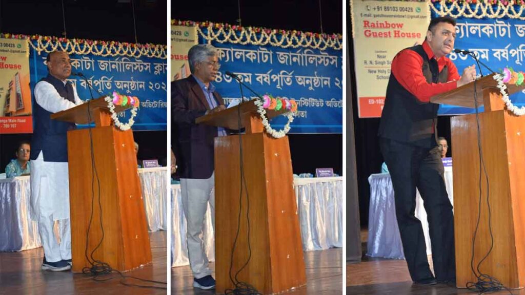 অনুষ্ঠানের শুরুতে ক্যালকাটা জার্নালিস্টস্ ক্লাবের সভাপতি প্রান্তিক সেন স্বাগত ভাষণে সংস্থার উদ্দেশ্য ও কার্যাবলীর সংক্ষিপ্ত বিবরণ দেন।