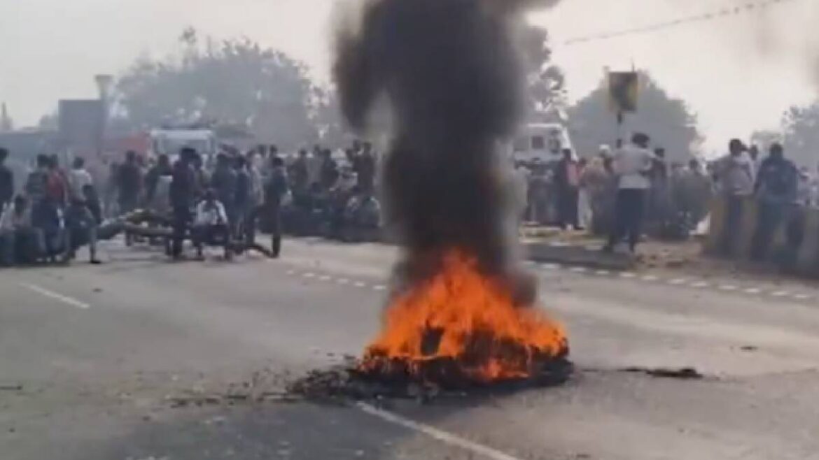 ঘটনার ভিডিওতে দেখা গেছে, রাস্তায় টায়ার জ্বালিয়ে বিক্ষোভ চলছে, পুলিশ ও স্থানীয়রা সেখানে উপস্থিত রয়েছে, ফলে যান চলাচল ব্যাহত হয়েছে।