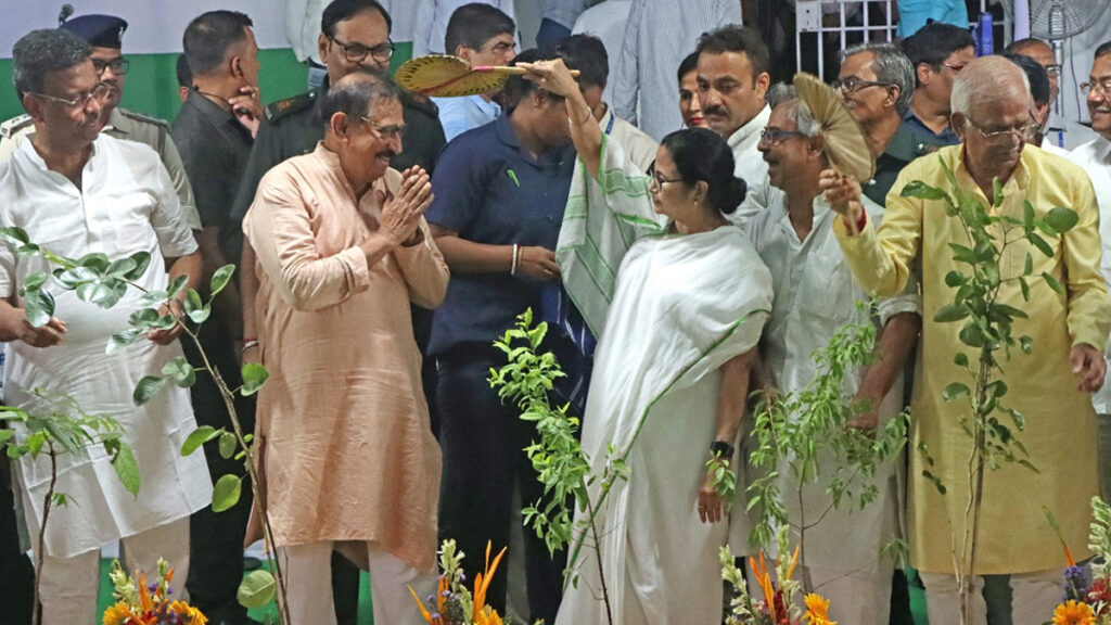 “সবুজের রঙে লাল কখনও হয় না…ওরাও তো খেলতে চায়। ওরাও তো আলো দেখায়। তাই ওদের বুকে এসো সোনা ঝরা।”… বনমহোৎসবে নিজের লেখা কবিতা পাঠ করে মমতা বলেন, “আমি সবুজ ভালবাসি, অরণ্য ভালবাসি। আকাশ ভালবাসি। একটা গাছের পাতা পড়ে গেলে মন কাঁদছে। আবার গাছে সবুজ পাতা এলে মনে হয় প্রকৃতি মাতা হাসছে।”