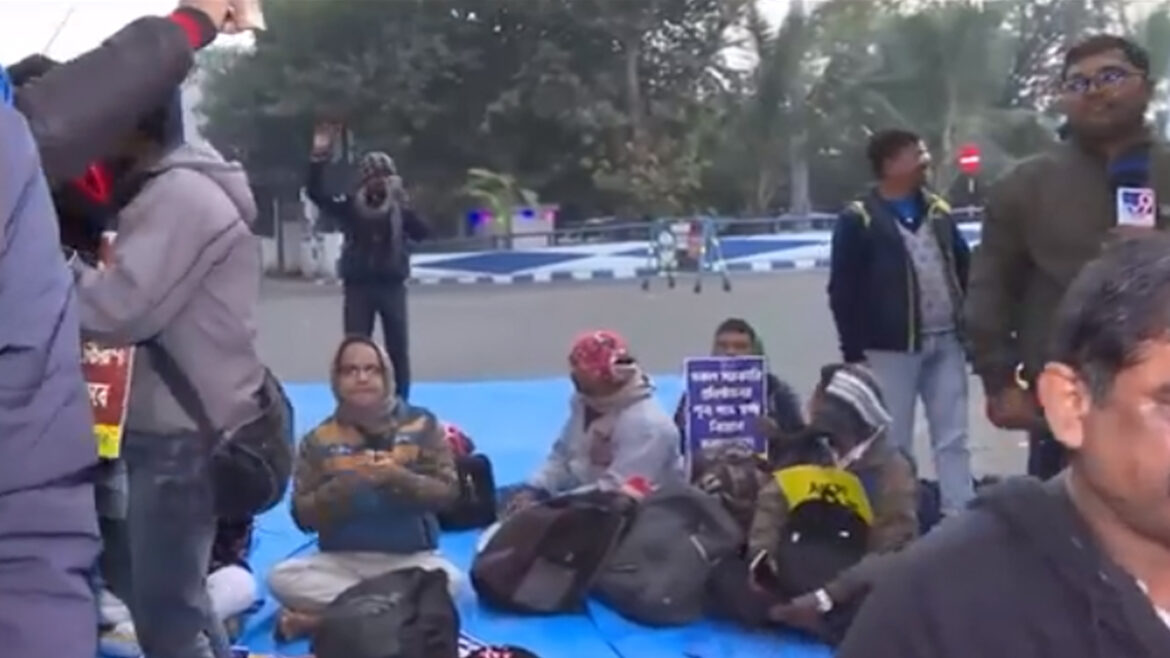 কাক ভোরে নবান্ন এলাকায় ডিএ আন্দোলনকারীরা, পুলিশের বাধা পেয়ে ফুটপাথে ধর্না