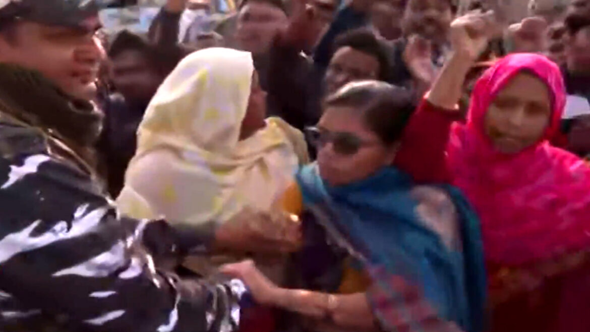 প্রথম পাতা খবর তৃণমূল নেতার বাড়িতে ইডি হানা, স্থানীয়দের বিক্ষোভে উত্তাল সন্দেশখালি