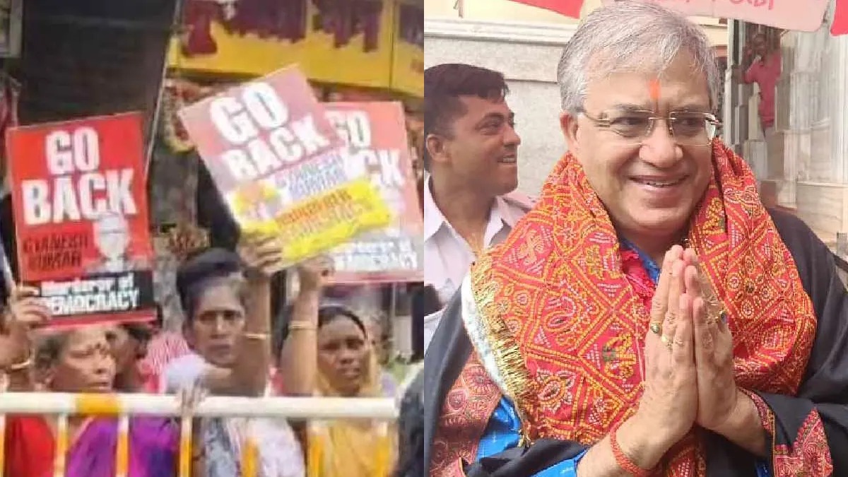 জ্ঞানেশের আগমনের আগেই মন্দিরের সামনে বিক্ষোভ শুরু হয়। কালো পতাকা হাতে বিক্ষোভকারীরা নির্বাচন কমিশনের বিরুদ্ধে এবং এসআইআর প্রক্রিয়ার বিরুদ্ধে স্লোগান দিতে থাকেন। অভিযোগ ওঠে, এসআইআর-এর মাধ্যমে ভোটার তালিকা থেকে অনেক বৈধ ভোটারের নাম বাদ দেওয়া হয়েছে। সেই ক্ষোভই মুখ্য নির্বাচন কমিশনারের সামনে প্রকাশ করেন বিক্ষোভকারীরা।
