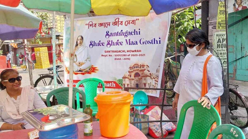 চলার পথের প্রান্তে থেকে যায় অনেক অনেক মণি মুক্তো। শ্রীমা সারদার এই মহান বাণীতে উদ্বুদ্ধ হয়ে ১মে, যেদিন আন্তর্জাতিক শ্রমিক দিবস, যেদিন বিশ্বমনস্বী স্বামী বিবেকানন্দ প্রতিষ্ঠা করেছিলেন বেলুড়ে শ্রীরামকৃষ্ণ মঠ ও মিশন মানুষের সেবার জন্য, সেই মে দিবসের দিনের সকালে হাওড়ার রামরাজাতলায় রামচন্দ্রের মন্দিরের কাছে ‘শিব জ্ঞানে জীব সেবা’র মহান ব্রত নিয়ে সাঁত্রাগাছি ‘মা’ গোষ্ঠীর সদস্য,সদস্যারা রাস্তায় নেমে পড়েছিলেন এই দারুণ গরমের দিনে পথচলতি মানুষের পিপাসায় তেষ্টার পরিশুদ্ধ পানীয় ORS,আমপানার শরবত, ইত্যাদি গ্লাসে গ্লাসে পথচলতি মানুষের হাতে হাতে তুলে দিতে।