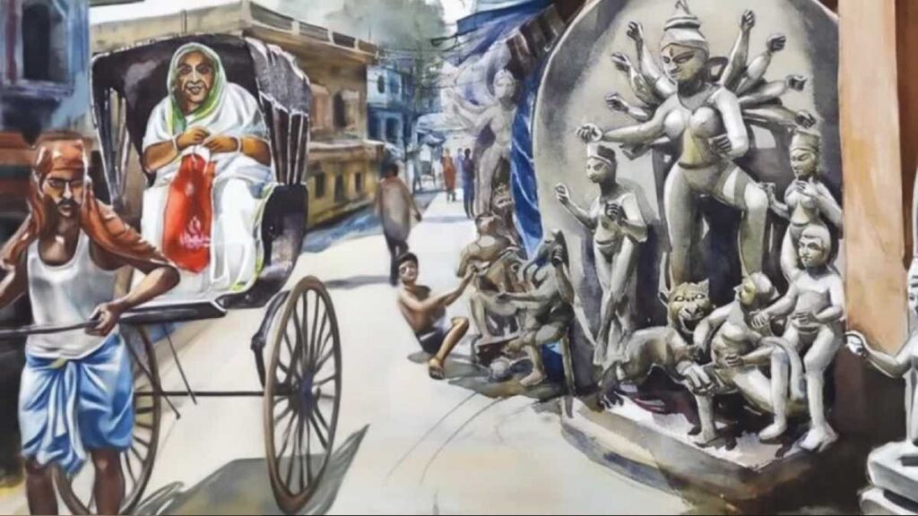 তাই নবকৃষ্ণ দেবের বাড়ির দুর্গা প্রতিমায় সিংহের স্থানে ঘোড়ার রূপ দেওয়া হয়। সেটি আজও চলে আসছে। নবকৃষ্ণ দেবই প্রথম কৃষ্ণ নগরের মৃৎ শিল্পীদের কলকাতায় নিয়ে আসেন। পরবর্তীকালে পুজো বৃদ্ধির সঙ্গে তাল মিলিয়ে কৃষ্ণ নগর থেকে অনেক মৃৎ শিল্পীর আগমন ঘটতে থাকে। তাই মৃৎ শিল্পীদের মহল্লা হিসেবে কুমোরটুলি বিশেষ পরিচিতি লাভ করে। তবে সব কিছুর উন্নতি হলেও মৃৎ শিল্পীদের অবস্থা ক্রমেই খারাপ হতে থাকে।