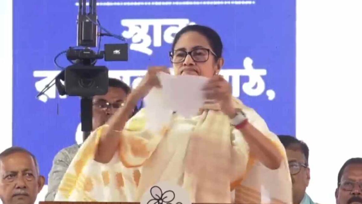 প্রথম পাতা খবর ১০০ দিনের কাজে ‘অসম্মানজনক’ শর্ত! কোচবিহারের সভায় কাগজ ছিঁড়ে প্রতিবাদ মমতার