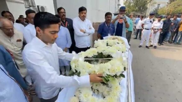 প্রয়াত রাজনীতিক মুকুল রায়-এর শেষযাত্রায় আবেগঘন পরিবেশ কাঁচরাপাড়া থেকে হালিশহর পর্যন্ত। উত্তর ২৪ পরগনার কাঁচরাপাড়ার ‘যুগল ভবন’-এর বাইরে বেশ কিছু ক্ষণ শায়িত ছিল তাঁর দেহ। একে একে শ্রদ্ধা জানান রাজনৈতিক মহলের বহু প্রতিনিধি। উপস্থিত ছিলেন তৃণমূলের সর্বভারতীয় সাধারণ সম্পাদক অভিষেক বন্দ্যোপাধ্যায়।