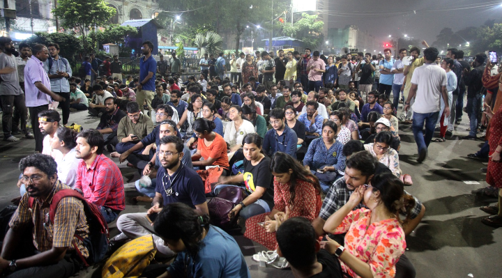জুনিয়র ডাক্তারদের অবস্থান ধর্মতলায়। ছবি: রাজীব বসু