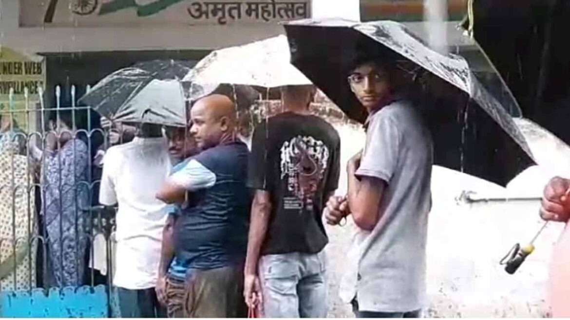 ভোট চলাকালীন ঝেঁপে বৃষ্টি, ছাতা মাথায় ভিড় ভোটারদের