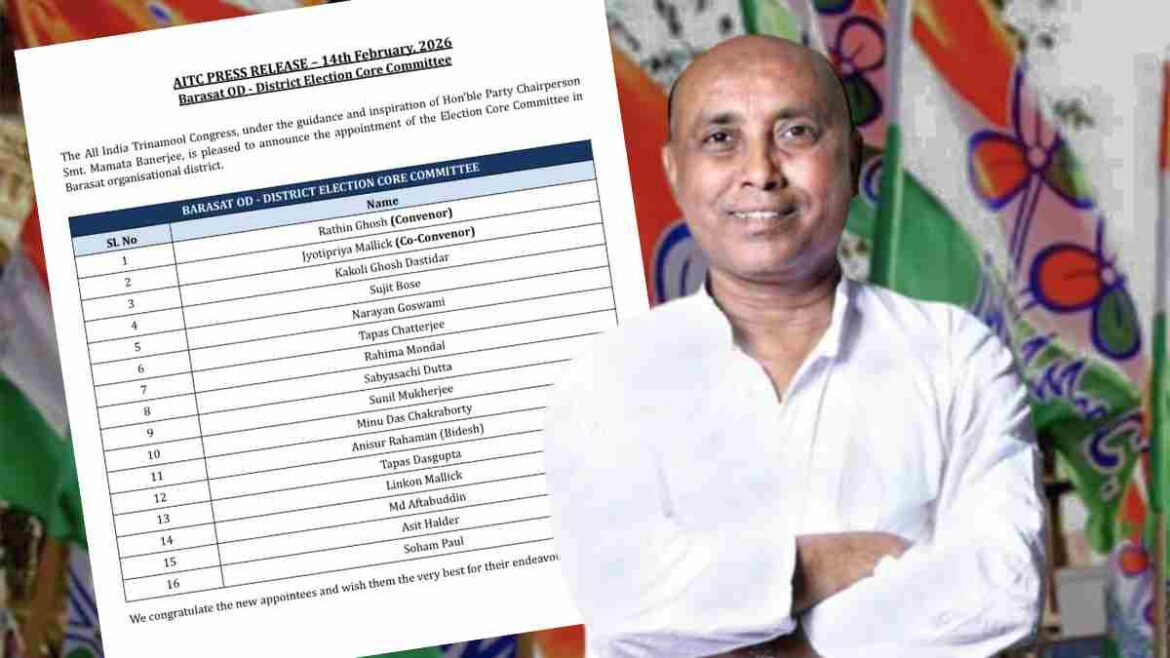 দলের এক্স হ্যান্ডলে প্রকাশিত তালিকা অনুযায়ী, বারাসতে ১৬ সদস্যের কোর কমিটি গড়া হয়েছে। আহ্বায়ক হয়েছেন খাদ্যমন্ত্রী তথা মধ্যমগ্রামের বিধায়ক রথীন ঘোষ। যুগ্ম আহ্বায়ক করা হয়েছে হাবড়ার বিধায়ক তথা প্রাক্তন খাদ্যমন্ত্রী জ্যোতিপ্রিয় মল্লিক-কে। রেশন দুর্নীতি মামলায় গ্রেফতার হলেও পরে জামিনে মুক্ত হন তিনি। ভোটের আগে তাঁকে বাড়তি দায়িত্ব দেওয়াকে তাৎপর্যপূর্ণ বলেই মনে করছে রাজনৈতিক মহল।