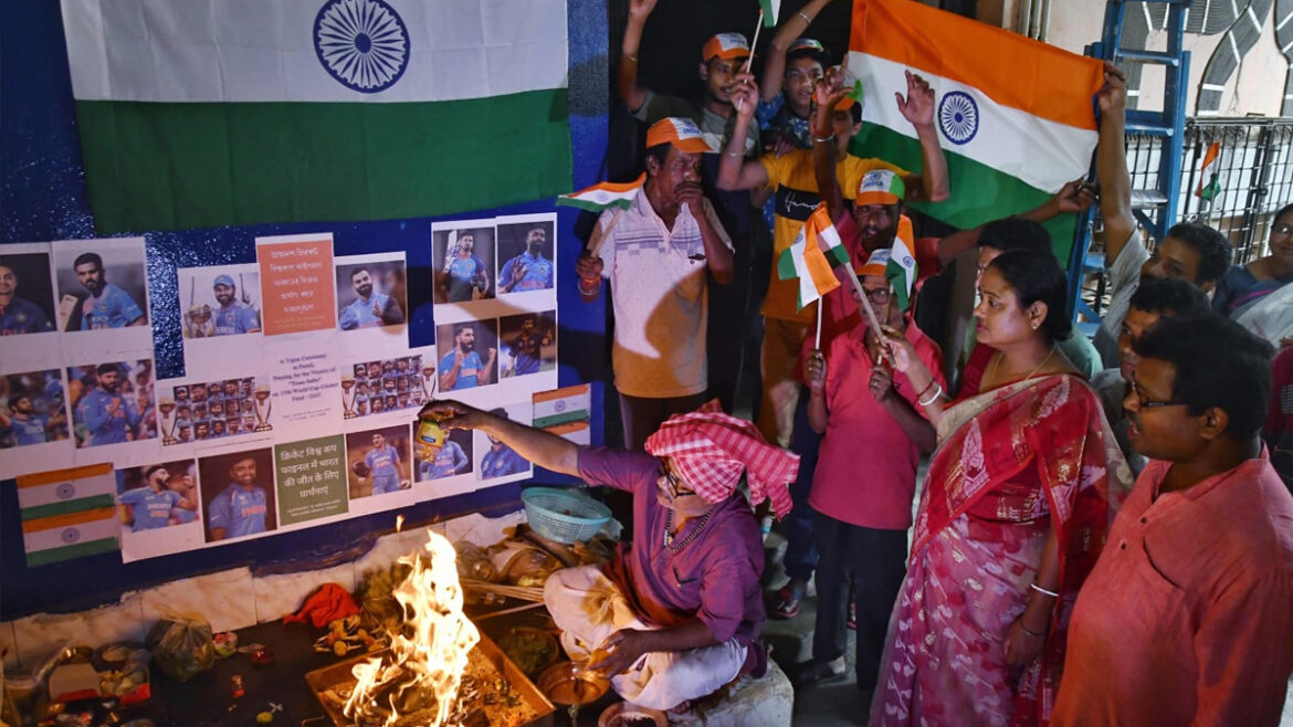 দেশের বিভিন্ন প্রান্তের মানুষ ভারতের বিশ্বজয়ের জন্য বিভিন্ন ভাবে প্রার্থনায় মগ্ন। সারা দেশের সঙ্গে তাল মিলিয়ে এ বার শহর কলকাতায় দেখা গেল বিশেষ প্রার্থনার আয়োজন। কলকাতার পাটুলির কে ব্লকের কেএমডিএ বাজারে অনুষ্ঠিত হল ভারতীয় ক্রিকেট দলের বিশ্বকাপ জয়ের জন্য বিশেষ হোমযজ্ঞ।