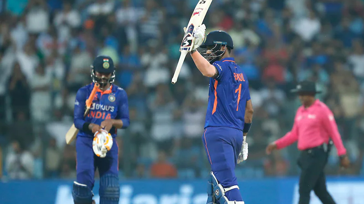 হার্দিকের সঙ্গে ৫৫ বলে ৪৪ রান যোগ করেন রাহুল। হার্দিক ফিরলেও টলানো যায়নি রাহুলকে। ৭৩ বলে অর্ধশতরান পূর্ণ করেন রাহুল। পা‌ঁচ নম্বরে ব্যাট করতে নেমে শেষ পর্যন্ত রাহুল অপরাজিত থাকলেন ৭৫ রানে। তাঁর দায়িত্বশীল ইনিংসে রয়েছে ৭টি চার এবং ১টি ছক্কা।