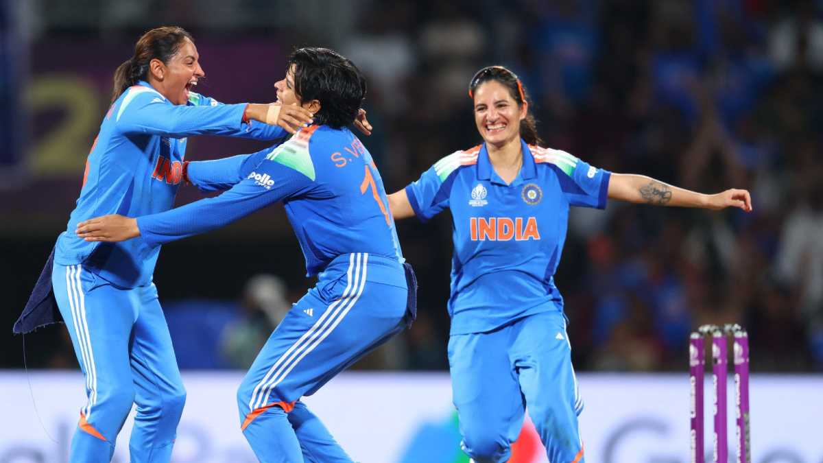 মন্ধানা আউট হন ৪৫ রানে। হরমনপ্রীত ও জেমাইমা ব্যর্থ হলেও ইনিংস সামলান দীপ্তি শর্মা ও রিচা ঘোষ। দীপ্তি ৫৮ রান ও রিচা ২৪ বলে ৩৪ রানের ঝোড়ো ইনিংস খেলেন।