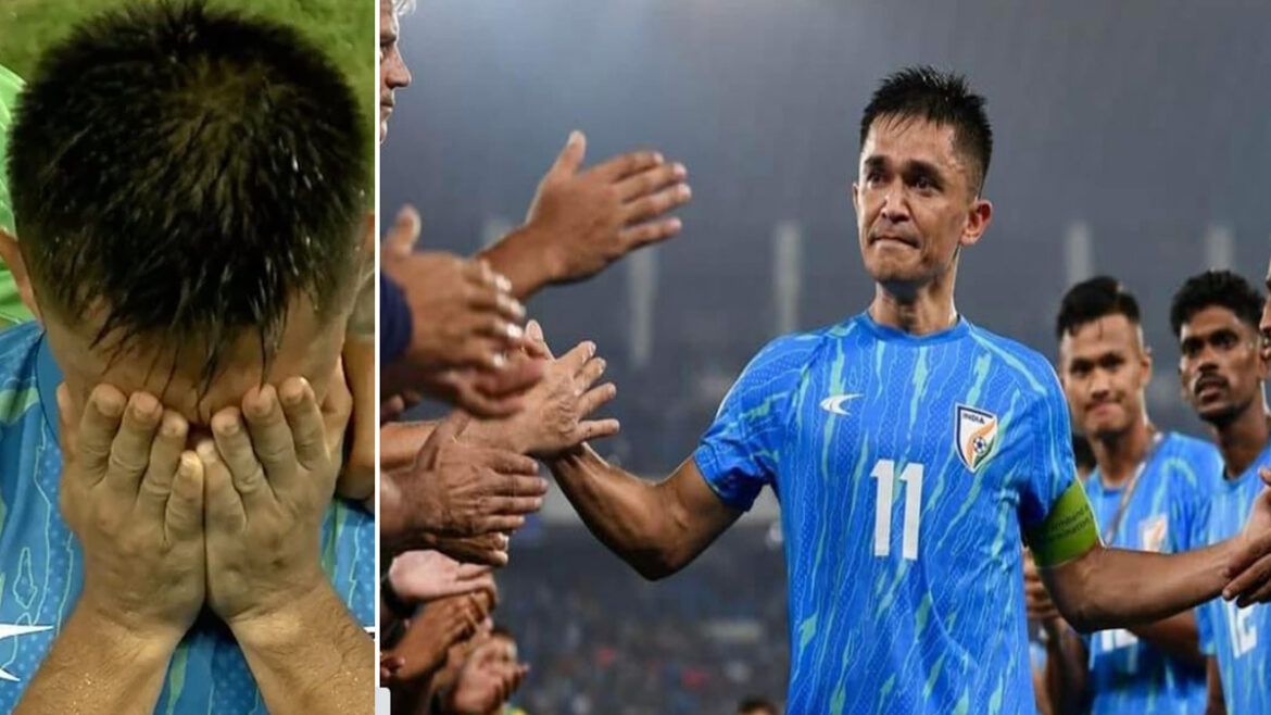 বৃহস্পতিবার ভারতীয় জার্সিতে শেষ ম্যাচ খেললেন সুনীল। গোটা মাঠ ঘুরতে শুরু করেন সুনীল। মাঠে উপস্থিত প্রায় ৬০ হাজার দর্শক যেন এটার অপেক্ষাতেই ছিল। সুনীল মাঠের প্রতিটি কোণে গেলেন আর চিৎকারে ফেটে পড়ে যুবভারতী ক্রীড়াঙ্গন। ভারতীয় ফুটবলের অন্যতম সেরা স্ট্রাইকার দর্শকদের প্রণাম জানান বার বার। নিজেও আবেগে ভাসলেন। শেষ বাঁশি বাজার পরেই মাঠে বসে পড়েন বিধ্বস্ত সুনীল। তখনই চোখের কোন থেকে নেমে আসে জলের ধারা। বারবার আটকাতে চেষ্টা করলেও শেষ পর্যন্ত আর কান্না সামলাতে পারেননি। অশ্রুসিক্ত চোখে গোটা মাঠ ঘুরে দর্শকদের ধন্যবাদ জানান। হাত জোড় করে কৃতজ্ঞতা জানান ভক্তকুলকে।