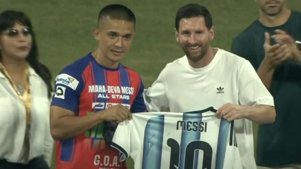 রবিবার ‘গোট কনসার্ট’-এর শুরুতে ইন্ডিয়া স্টার্স বনাম মিত্রা স্টার্সের মধ্যে একটি প্রীতি ম্যাচ অনুষ্ঠিত হয়। সেই ম্যাচে সুনীল ছেত্রী হেডে গোল করে গ্যালারিতে রোমাঞ্চ ছড়ান। এরপর পেনাল্টি নেন লিয়োনেল মেসি। নিখুঁত শটে বল জালে জড়াতেই উল্লাসে ফেটে পড়ে স্টেডিয়াম। রোমাঞ্চ এখানেই থামেনি—এরপর মেসি বল নিয়ে শট নিলে তা সোজা উঠে যায় দোতলার গ্যালারিতে। বারবার দর্শকদের দিকে হাত নেড়ে অভিবাদন জানান আর্জেন্টিনীয় রাজপুত্র। গোটা সময়জুড়ে তাঁকে দেখা যায় খোশমেজাজে। তাঁর সঙ্গে সমানতালে উচ্ছ্বাসে মাতান রদ্রিগো ডি পল ও লুইস সুয়ারেজও।